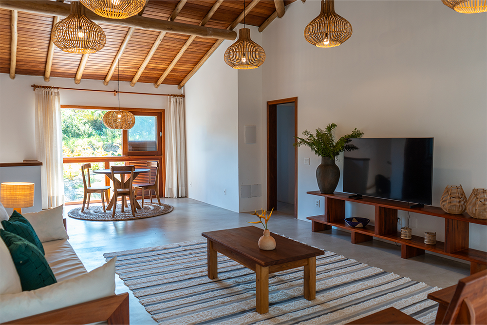 O Terravista está localizado no topo da falésia, próximo a praias deslumbrantes e à mata atlântica preservada, sob um céu límpido.